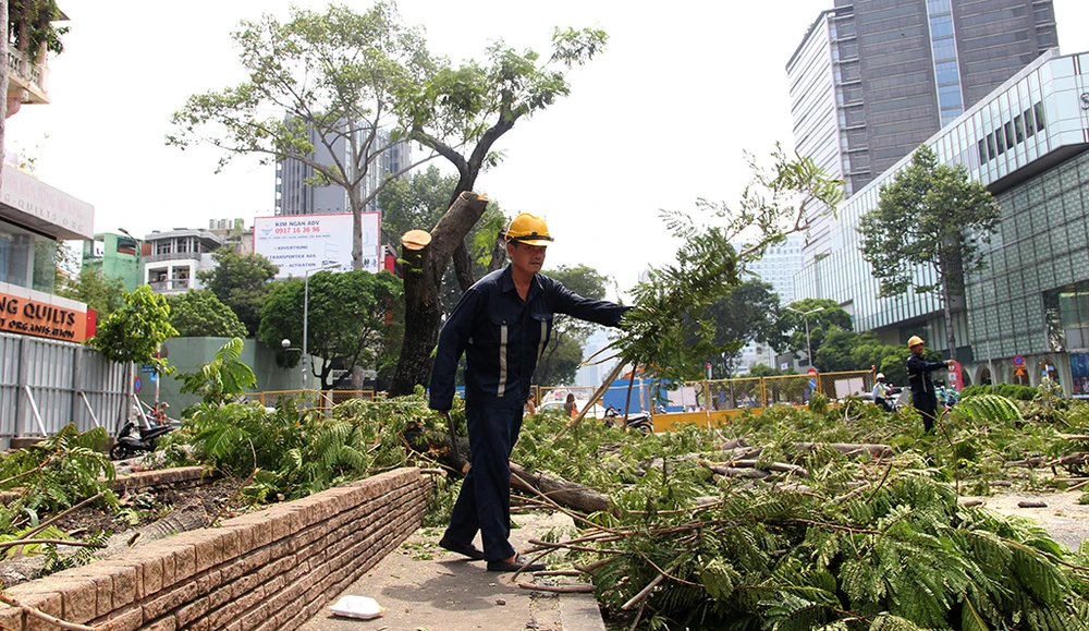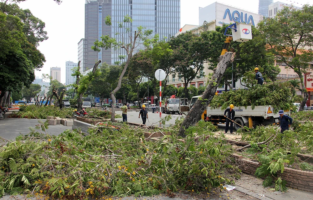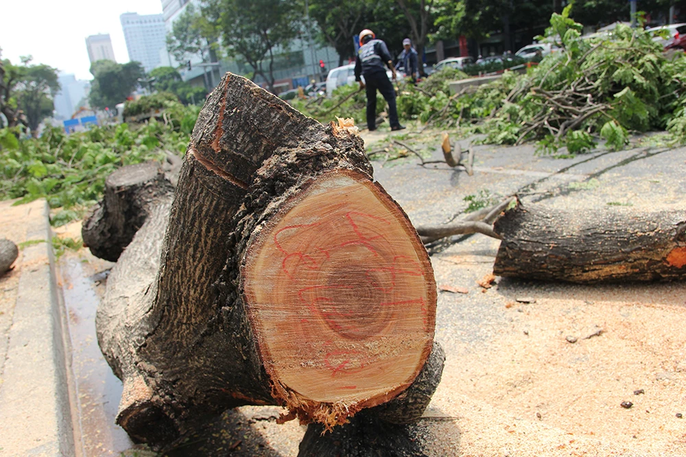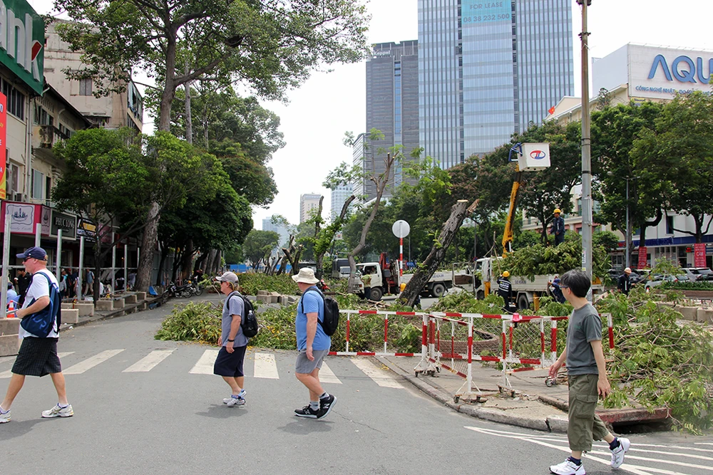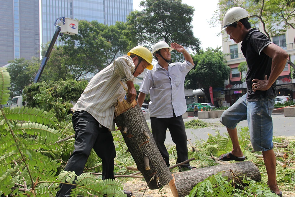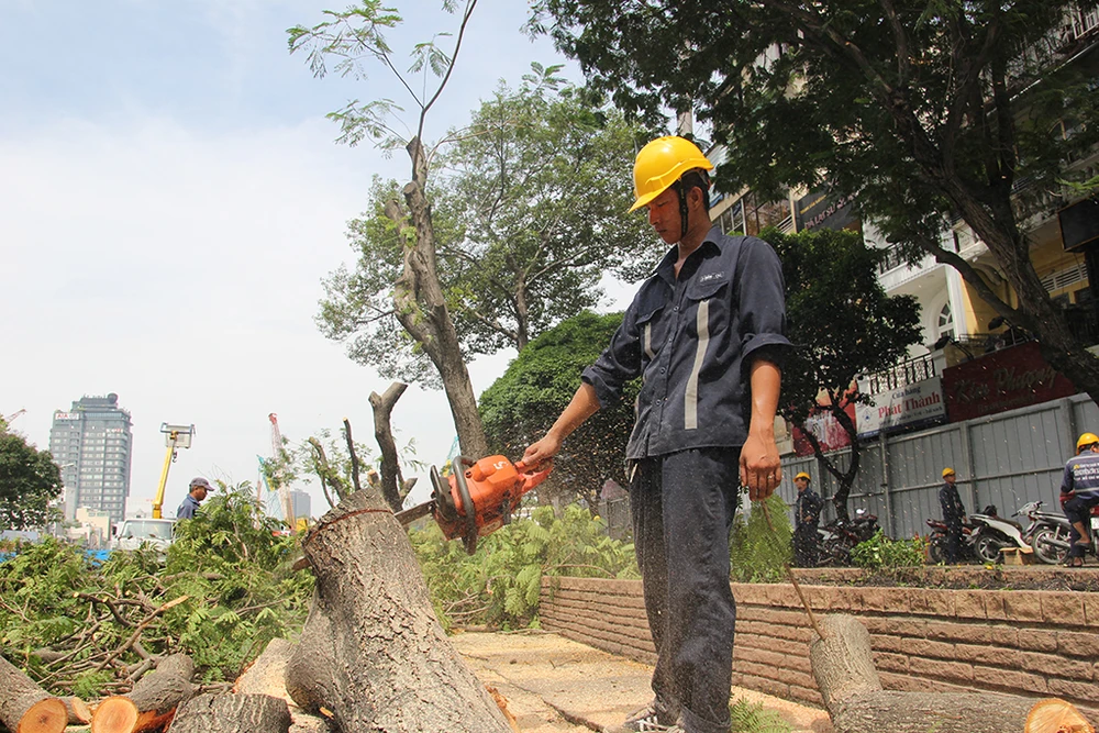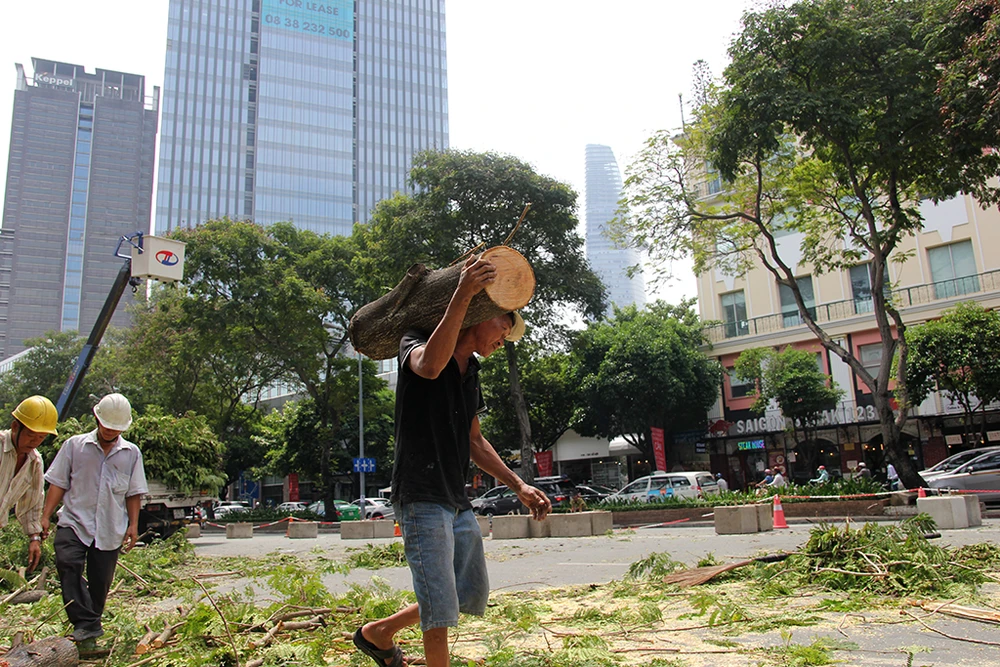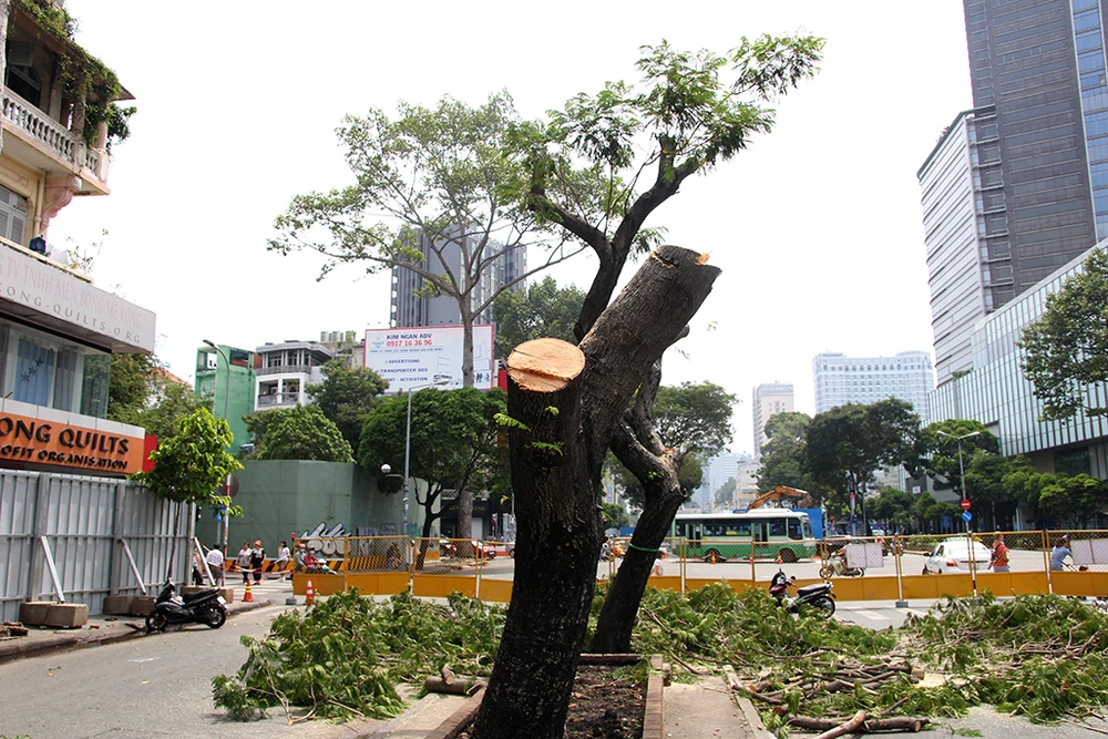 Trước đó, ngày 4-5, Sở GTVT TP.HCM và Ban Quản lý đường sắt đô thị cho biết trong tháng 5 sẽ đốn hạ, di dời 28 cây xanh nằm trên vỉa hè đường Lê Lợi đoạn từ Pasteur đến Phan Bội Châu, theo hướng đi về phía chợ Bến Thành, quận 1, TP.HCM.