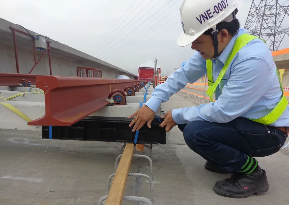 Bên dưới hệ ray và tà vẹt là các hộp chống rung đảm bảo cho tàu chạy êm thuận, không tạo ra tiếng ồn, gây ô nhiễm môi trường.