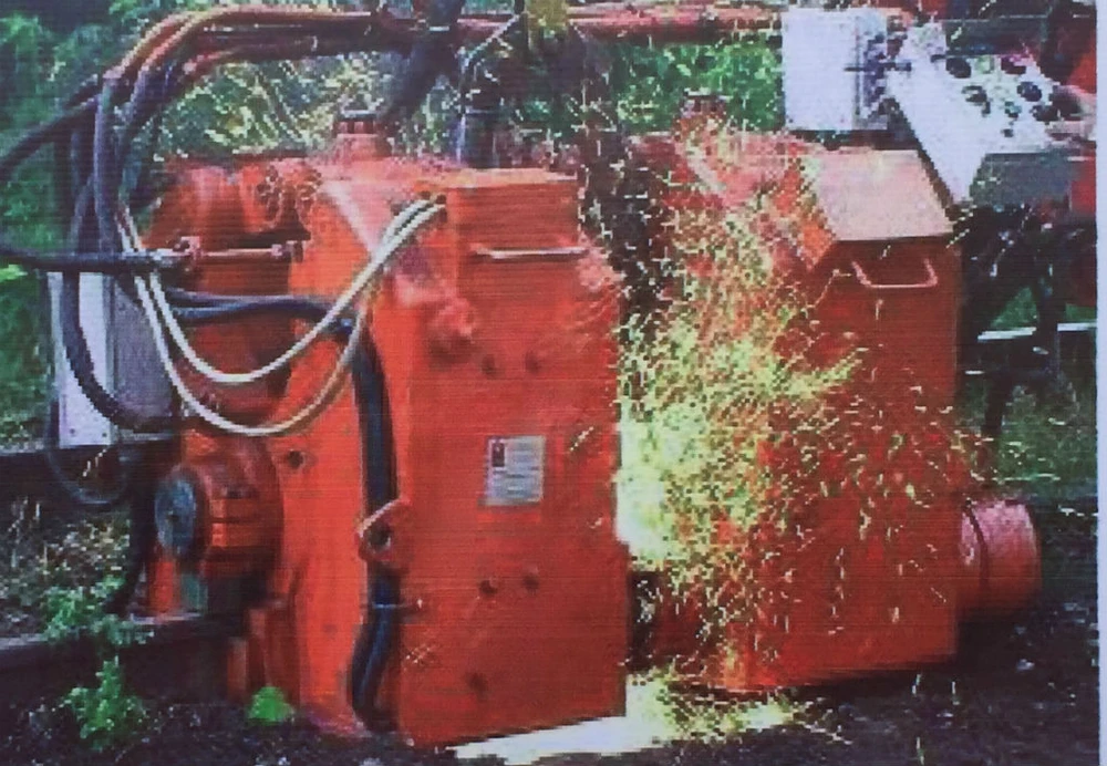 Mỏ hàn bắn điện cao tần nối hai thanh ray lại với nhau.