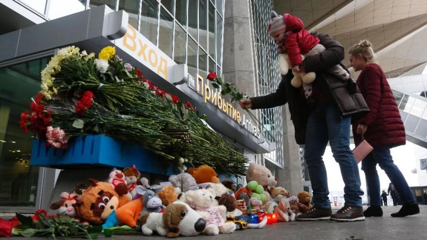 Người dân Nga đặt hoa, nến, đồ chơi tại sân bay Pulkovo (St. Petersburg) để tưởng niệm các nạn nhân xấu số trong thảm kịch rơi máy bay. Ảnh: FOXNEWS