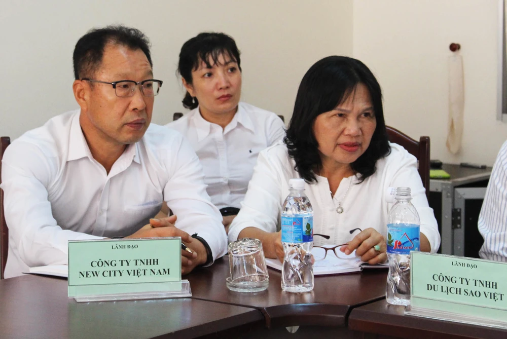 Đại diện Công ty TNHH New City Việt Nam và Công ty TNHH Du lịch Sao Việt- hai doanh nghiệp có dự án sử dụng đất rừng phòng hộ, tại buổi công bố quyết định. Ảnh: TẤN LỘC