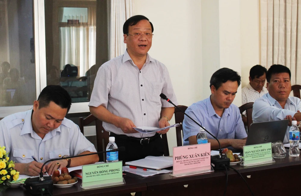 Ông Phùng Xuân Kiên, Phó Cục trưởng Cục Giải quyết khiếu nại, tố cáo và thanh tra khu vực II, Trưởng đoàn kiểm tra, công bố quyết định của Tổng Thanh tra Chính phủ. Ảnh: TẤN LỘC
