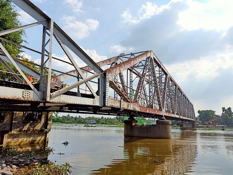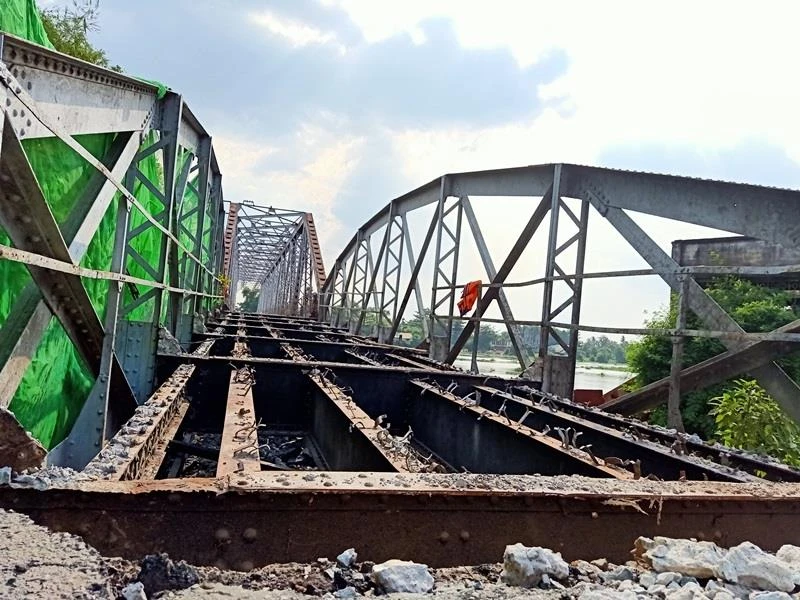 Hiện cầu Phú Long đang được tháo dỡ. Ảnh: HUẾ XUÂN.