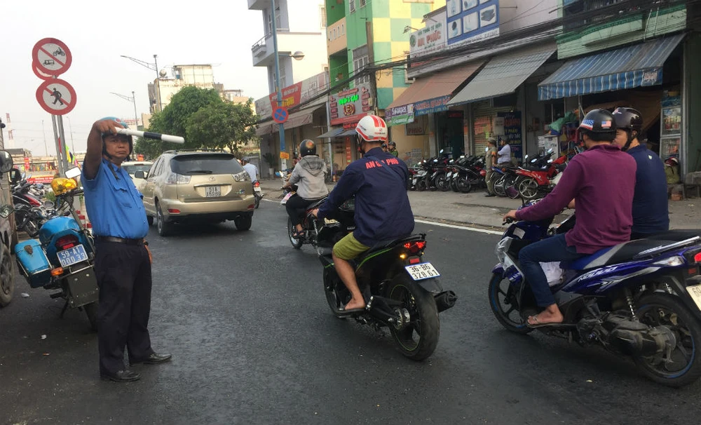 Dù đã có biển báo phía trước đường xuống hầm chui và trên đường Trường Chinh trước khi vào nút giao An Sương nhưng Thanh tra giao thông đội số 7 vẫn có mặt để hướng dẫn người, xe qua hầm, qua nút.