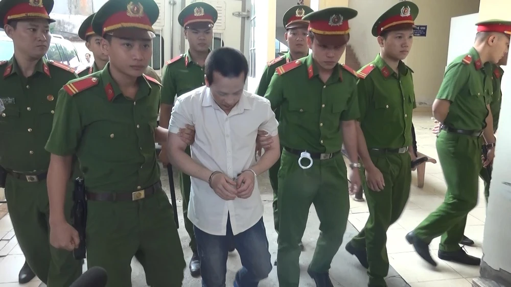 Bị cáo Trần Trọng Luận được lực lượng công an áp giải tới phiên tòa. Ảnh: LÊ ÁNH