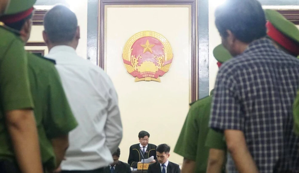 Chủ tọa phiên tòa đọc quyết định đưa vụ án ra xét xử. Ảnh: QUỐC VŨ