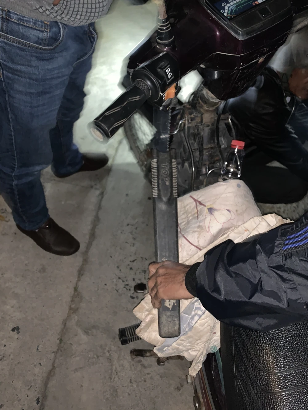 Rạng sáng 14-2, Vũ chạy xe máy mang theo cưa đi trộm cây tiếp thì bị trinh sát bắt giữ.