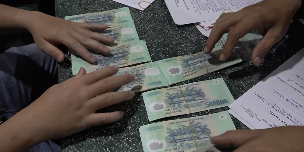 Tỷ lệ quy định là bốn triệu tiền thật mua được 10 triệu tiền giả. Sau đó, Giang giới thiệu cho Long giao dịch với người phụ nữ tên Nguyên ba lần, với tổng số tiền giả là hơn 300 triệu, mệnh giá 200 ngàn và 500 ngàn.