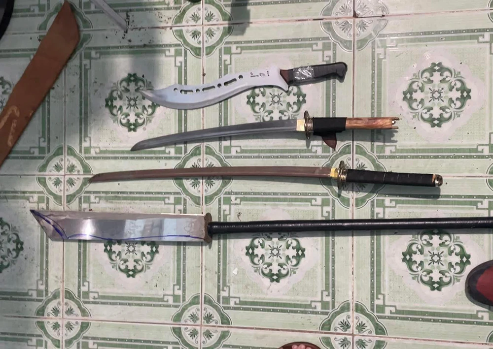 Tại hiện trường, Công an thu giữ một lượng lớn tiền giả, một quả lựu đạn, nhiều hung khí nguy hiểm.