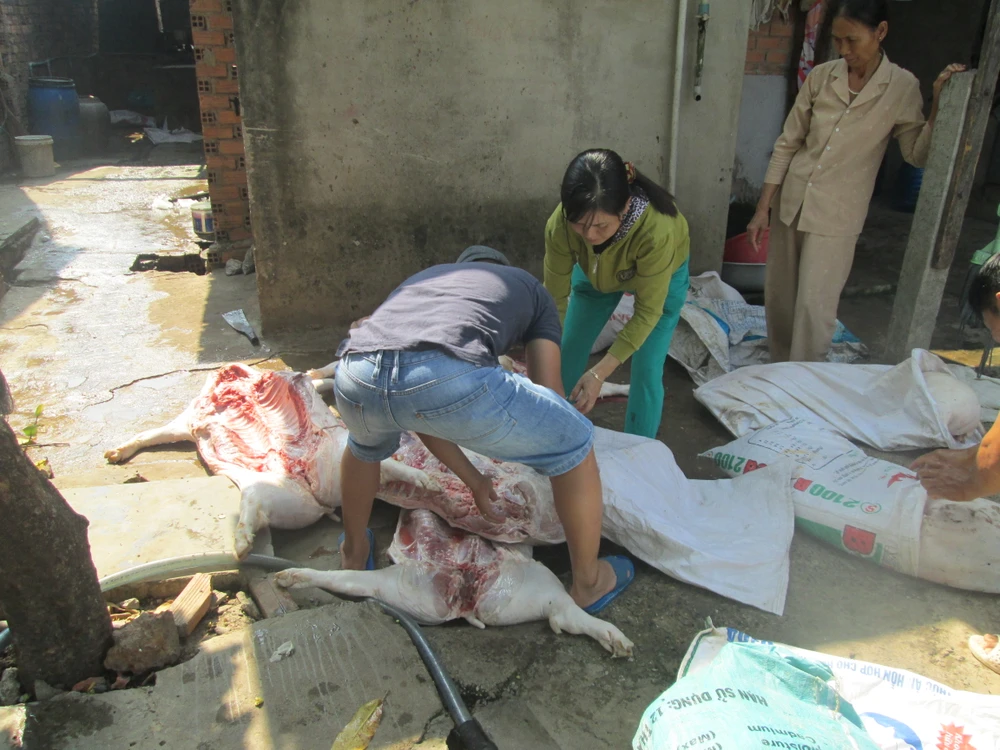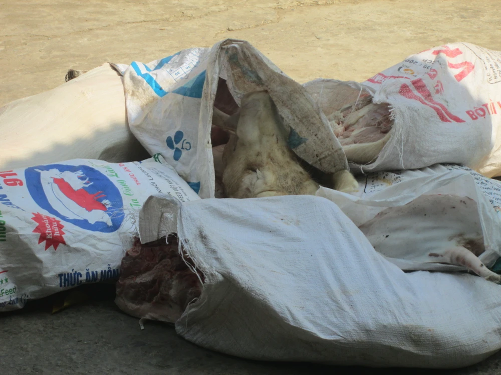Làm việc với cơ quan chức năng, bà Thái khai nhận thu gom số heo chết trên của những hộ chăn nuôi trên địa bàn rồi về giết mổ rồi cung cấp cho các điểm làm heo quay ở TP.HCM, Bình Dương.