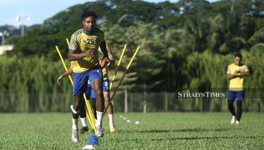 Ngôi sao nhập tịch của tuyển Malaysia, Sumareh đang tập luyện tại Bangkok trong màu áo Police Tero. Ảnh: NST.