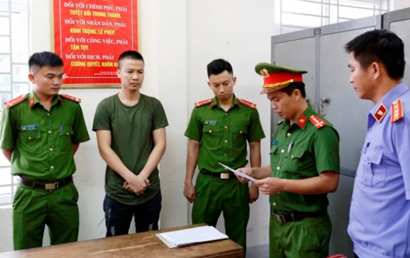 Cơ quan công an tống đạt quyết định khởi tố bị can đối với Nguyễn Trọng Hùng. (Ảnh do Công an tỉnh Hà Tĩnh cung cấp)