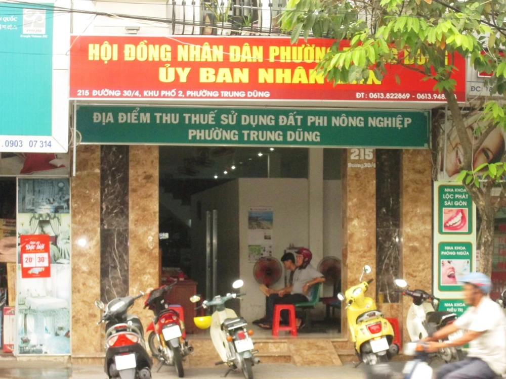 Trụ sở UBND phường Trung Dũng, nơi các nghi can đã xông vào chém người. Ảnh: TIẾN DŨNG