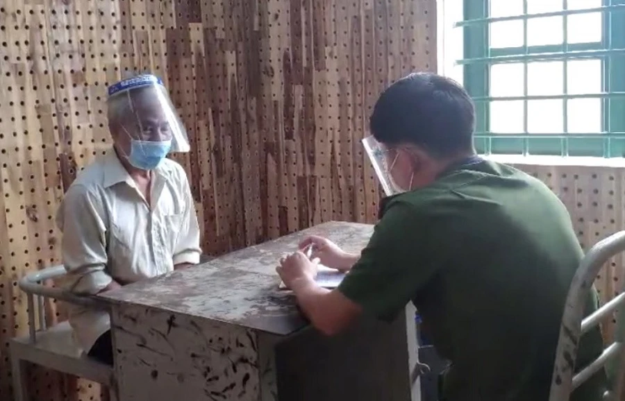 Công an làm việc với bị can Chính. Ảnh QM