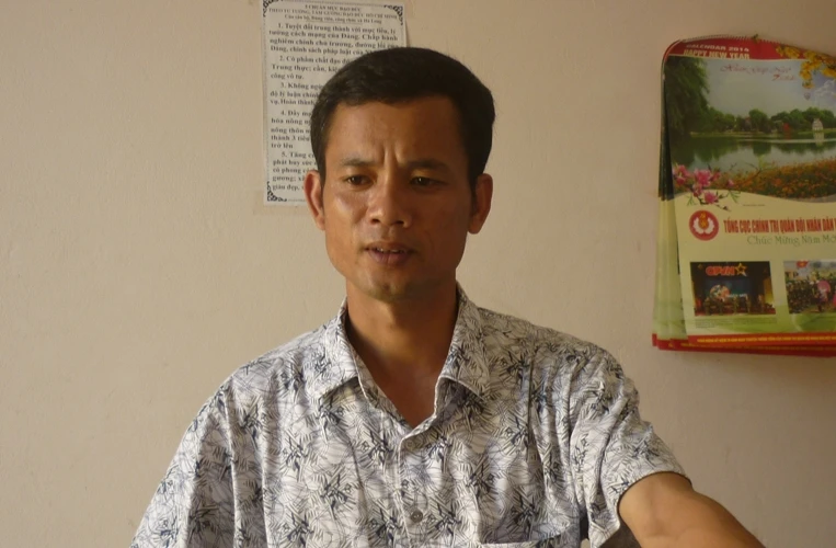 Ông Nguyễn Văn Lê, Trưởng Công an xã Hà Long, Hà Trung (Thanh Hóa) đang trao đổi với phóng viên.