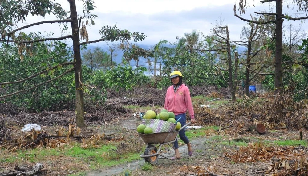 Người dân huyện Khánh Sơn bị thiệt hại nặng do bão số 12. Ảnh: VNM