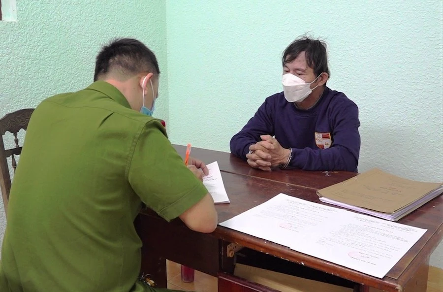 Huỳnh Ngọc Lên tại cơ quan công an. Ảnh: CA