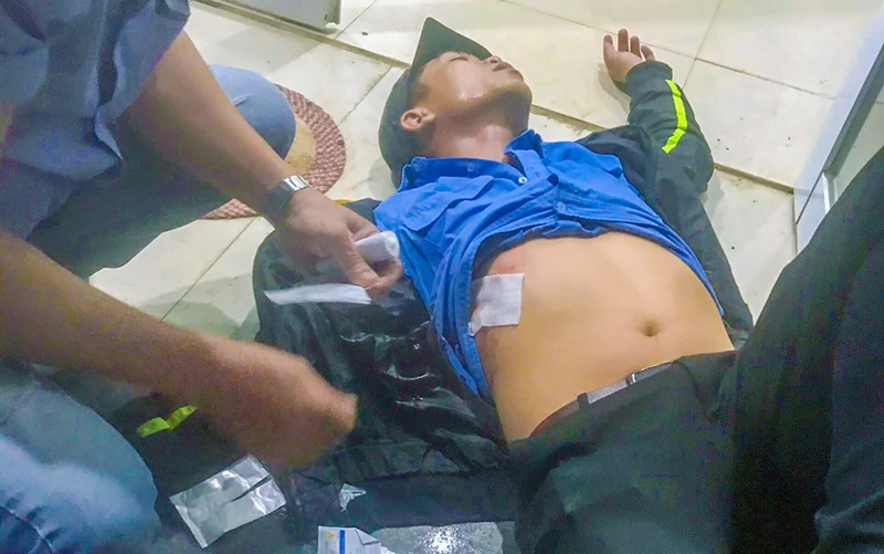 Nhân viên bảo vệ bị đâm trọng thương, gục tại chỗ. Ảnh: ĐT