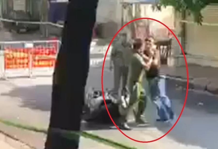 Sau đó, ông Thịnh giằng co, xô đẩy, đạp vào người một cán bộ công an và nhặt viên gạch ném lên vỉa hè.
