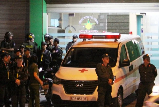 Lực lượng công an huy động để bao vây bệnh viện, bắt các nghi can.