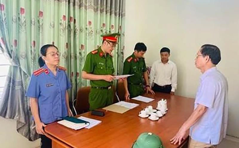 Phòng Cảnh sát kinh tế, Công an tỉnh Thanh Hóa đọc lệnh bắt giam cựu chủ tịch xã Hoằng Ngọc (Hoằng Hóa, Thanh Hóa), ông Bùi Ngọc Châu