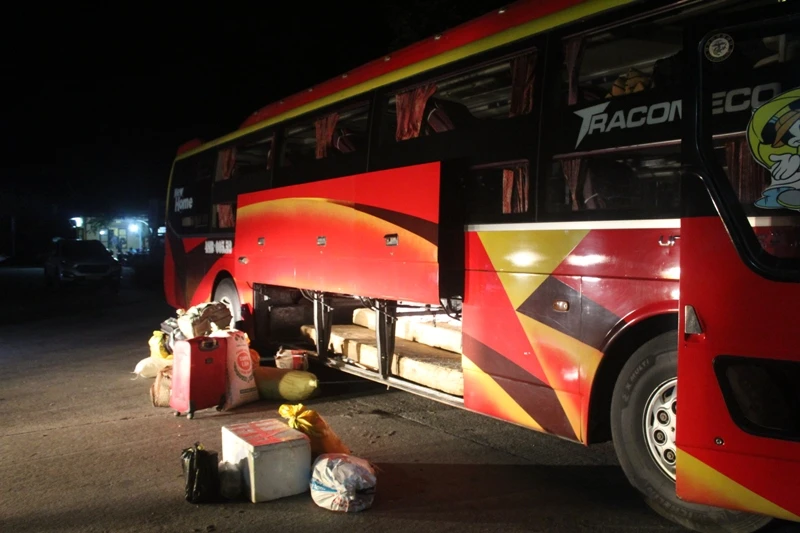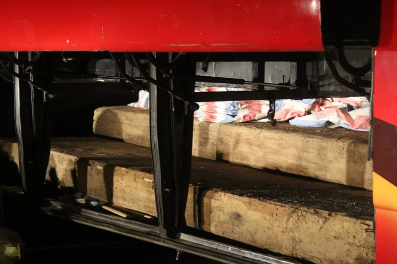 Qua kiểm tra, tổ công tác phát hiện nhiều tấm gỗ lớn dưới thành hàng cùng năm phách gỗ nhỏ được ngụy trang tinh vi trong bao, cất giấu dưới gầm và trên giường của xe khách.