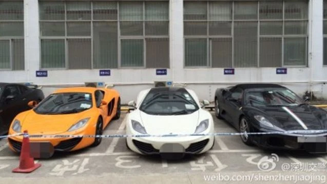 Ảnh từ trang Weibo của cảnh sát Thâm Quyến cho thấy một số chiếc siêu xe đang bị thu giữ.