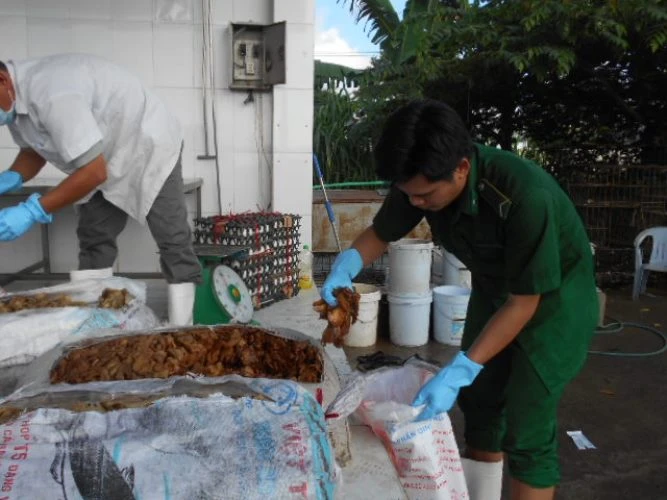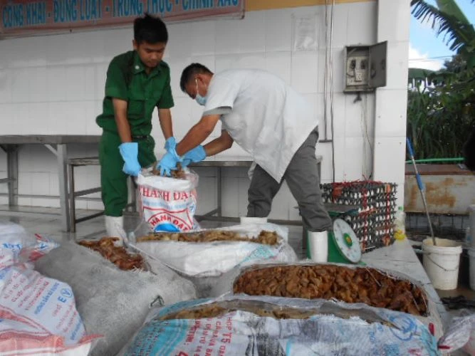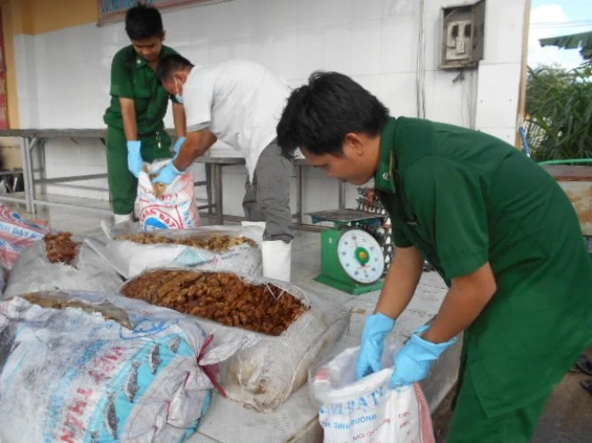 Theo ông Phạm Ngọc Chí, Trưởng trạm kiểm dịch động vật Thủ Đức, heo sữa thối nói trên được nhập vào TP.HCM rồi sơ chế để chế biển các món ăn như heo quay giòn. Tóp mỡ được đưa vào ép thành từng bánh rồi đem bỏ mối tại các quán ăn, quán nhậu.