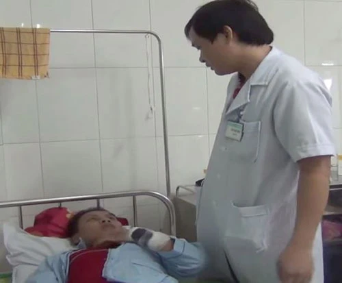 Chưa dừng lại ở đó, Nhị dùng dao đâm vào người ông Lâm rồi bỏ chạy. Ông Lâm được mọi người đưa đến BV 115 Nghệ An cấp cứu trong tình trạng bị dao đâm đứt gân trụ bàn tay trái.