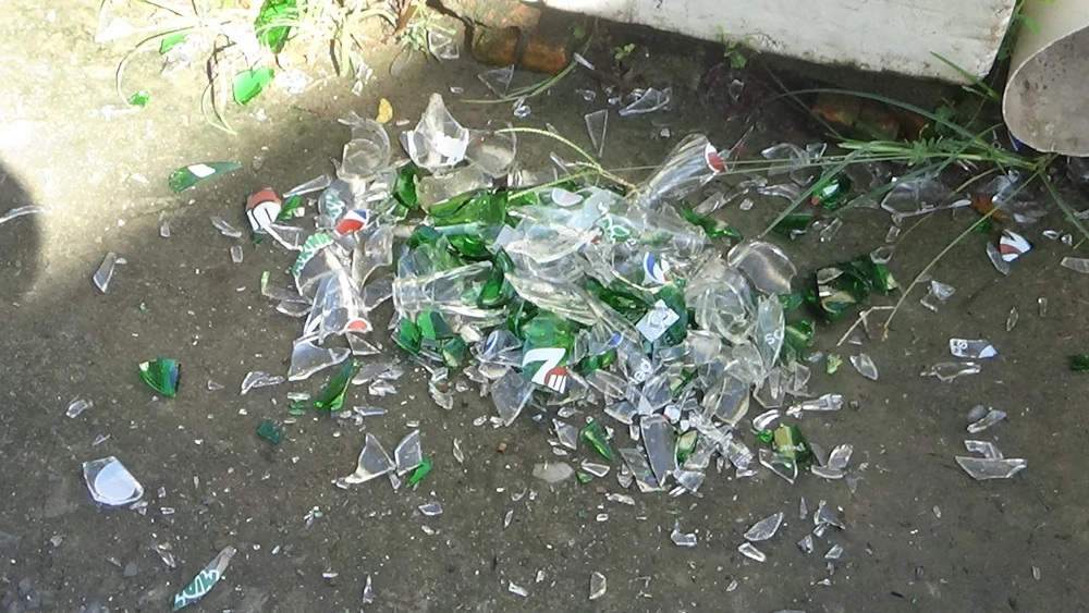 Vỏ chai thủy tinh bể đối tượng dùng tấn công lực lượng chức năng.