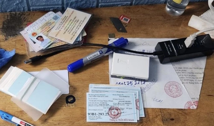 Theo cơ quan công an, khoảng tháng 6, Chiều lên mạng xã hội mua các thiết bị và vật liệu để làm giả giấy tờ.