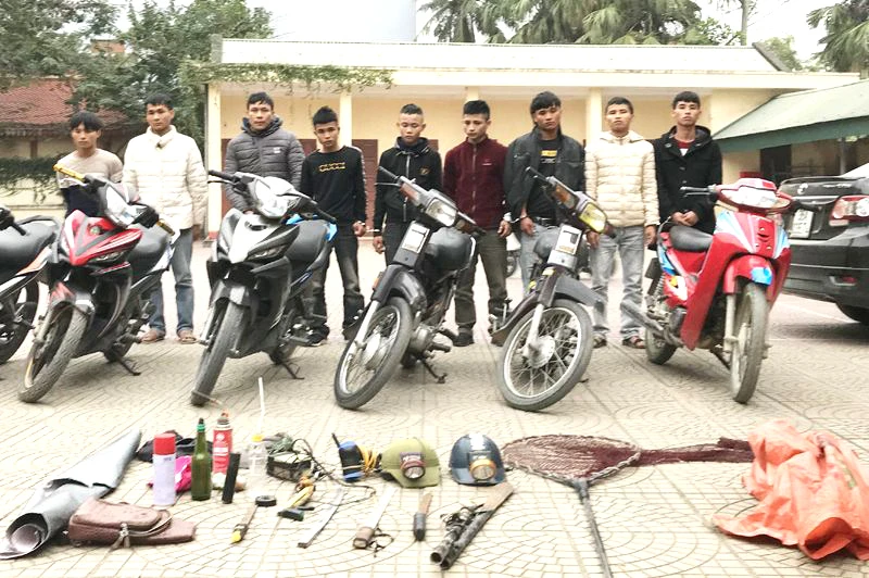 Theo đó, các đối tượng bị bắt giữ là Đoàn Công Yên, Trần Ngọc Anh, Đỗ Xuân Thái, Đới Sỹ Tân, Lê Đình Long, Lê Văn Tuấn, Lê Văn Nam (đều ngụ ở huyện Quảng Xương) và Cao Văn Anh, Trần Trọng Nam (ngụ ở TP Sầm Sơn).