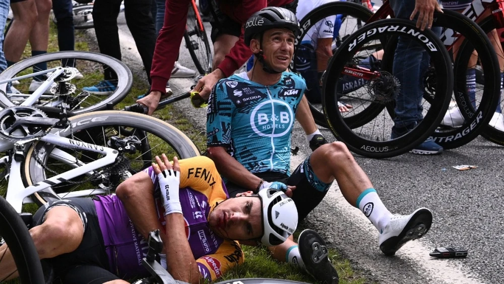Trong một đoạn clip được cuộc đua ghi lại, người phụ nữ không rõ danh tính mặc áo khoác màu vàng, cầm một biển cổ động bằng bìa cứng đã gây ra vụ tai nạn. Nó cũng làm dấy lên các cuộc tranh luận về sự an toàn giữa khán giả và các VĐV tại các giải đua xe đạp.