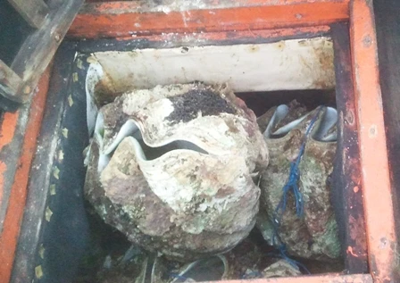 Sò tai tượng phát hiện trên tàu cá của ông Nguyễn Hoa. Ảnh: XUÂN VINH