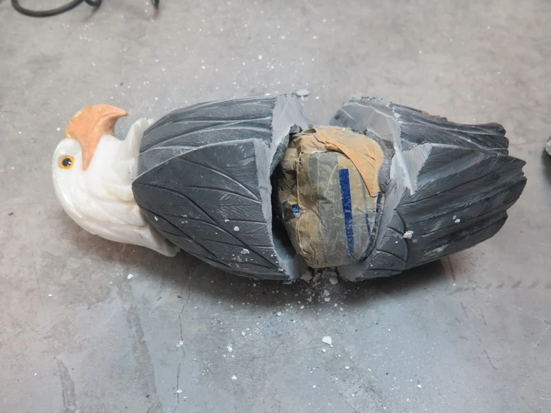 Bằng biện pháp nghiệp vụ, cơ quan hải quan và các lực lượng chức năng đã phát hiện 1,84 kg Cocain, trị giá hơn 5 tỉ đồng được cất giấu tinh vi trong 4 tượng con chim đại bàng bằng đá tự nhiên. Với thủ đoạn khoan rỗng ruột các tượng, nhét ma tuý bên trong sau đó gia công lại như mới đựng trong các thùng sắt chứa đựng hàng trăm bức tượng hình chim nhằm qua mặt lực lượng hải quan để thông quan. Cơ quan hải quan phải sử dụng máy cắt, khoan đá phá vỡ các bức tượng mới phát hiện được.