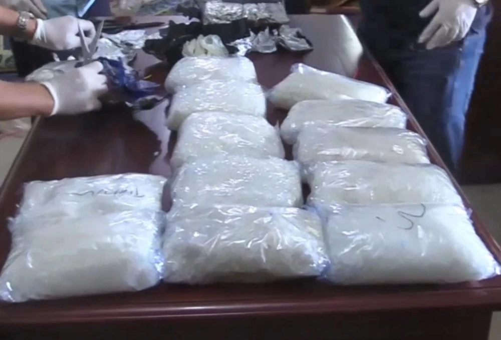 Qua kiểm tra, lực lượng chức năng phát hiện 16 gói nylon (15 gói nylon màu trắng và một gói nylon màu xanh) với trọng lượng khoảng hơn 15 kg, bên trong có chứa chất tinh thể màu trắng nghi là ma túy đá, được giấu rất kỹ trong khoang hành lý.