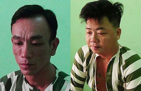 Huỳnh Văn Vinh và Nguyễn Anh Tuấn tại cơ quan điều tra. (Ảnh do cơ quan công an cung cấp)