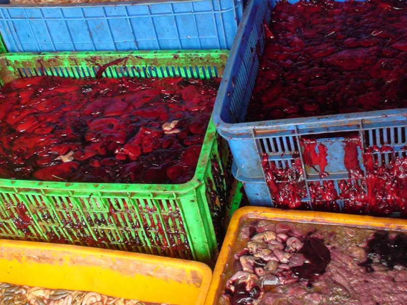 Số nội tạng chuẩn bị đổ xuống sông.