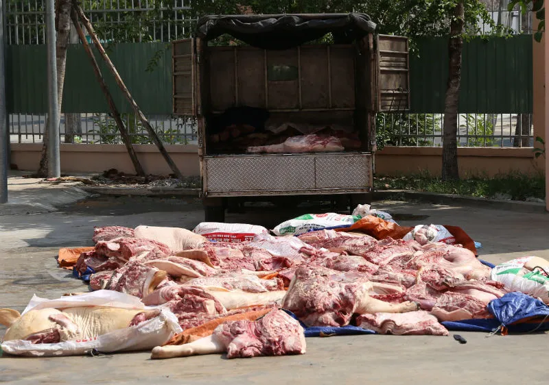 Theo cơ quan công an, sau thời gian bố trí lực lượng theo dõi, đêm 16-4, các trinh sát phối hợp Công an phường An Phú (thị xã Thuận An) đã bắt quả tang xe tải mang biển số 60C-009.29 do ông Nguyễn Đức Bình (46 tuổi, thường trú tại huyện Thống Nhất, Đồng Nai) điều khiển đang vận chuyển thịt heo không có giấy chứng nhận kiểm dịch. Số lượng heo hơn 1 tấn đã bốc mùi thối đang được chuẩn bị giao cho các chủ sạp tại chợ Đông Đô.