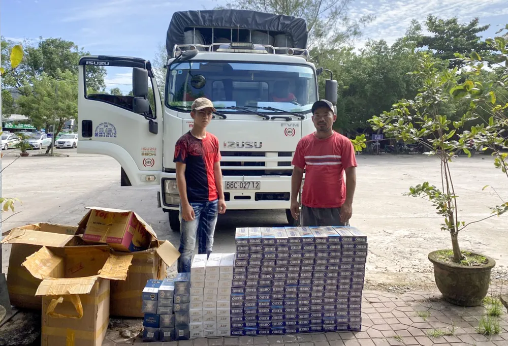 Tiến hành dừng xe và kiểm tra, lực lượng phát hiện trên xe chở 1.840 gói thuốc lá ngoại nhãn hiệu Hero, Jet và 555.