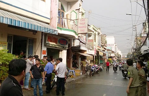 Hiện trường xảy ra án mạng tại nhà trọ 102. Ảnh: X.NGỌC