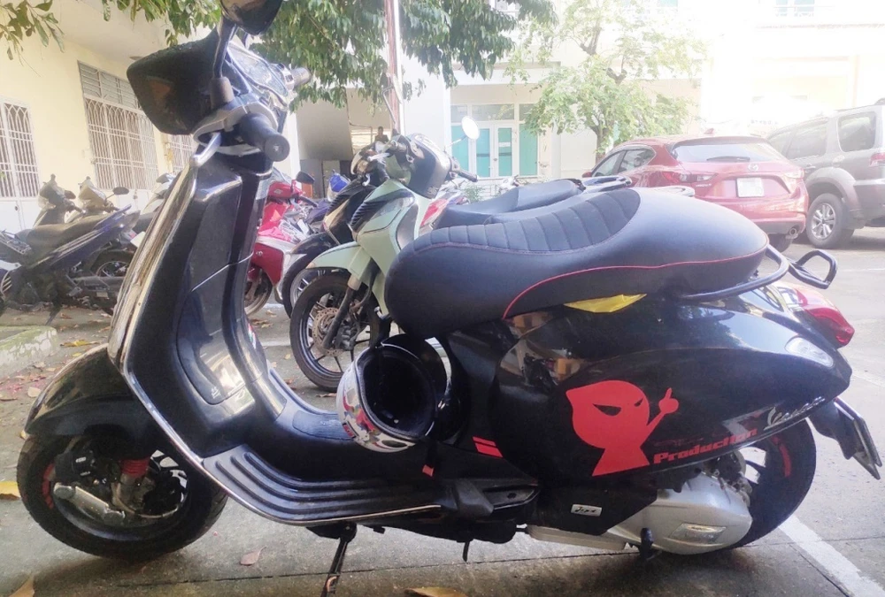 Ngoài ra, xe tay ga hiệu Vespa mà Kiên đang sử dụng, nghi phạm này cũng lừa của một người khác rồi gắn biển giả vào.