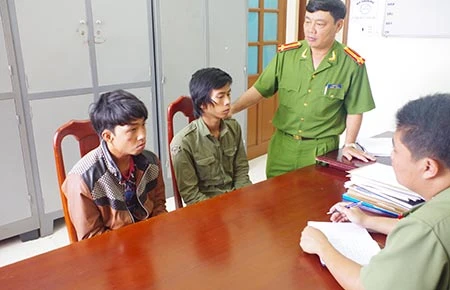 Thành và Hoàn bị cảnh sát truy nã tội phạm Công an tỉnh Đắk Nông bắt giữ. Ảnh: M.HIỀN
