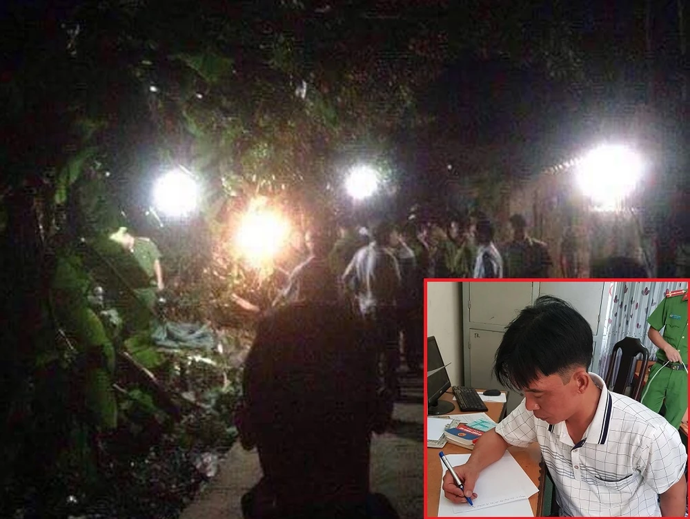 Trần Văn Hùng (ảnh nhỏ) và hiện trường phát hiện thi thể cụ bà.