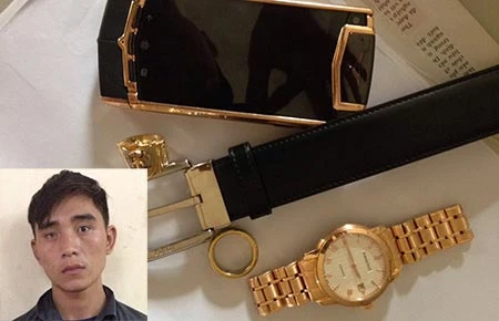 “Siêu trộm” Ngô Văn Trường và số tài sản Trường trộm được của Phó Tổng Giám đốc ĐTD. Ảnh: CTV