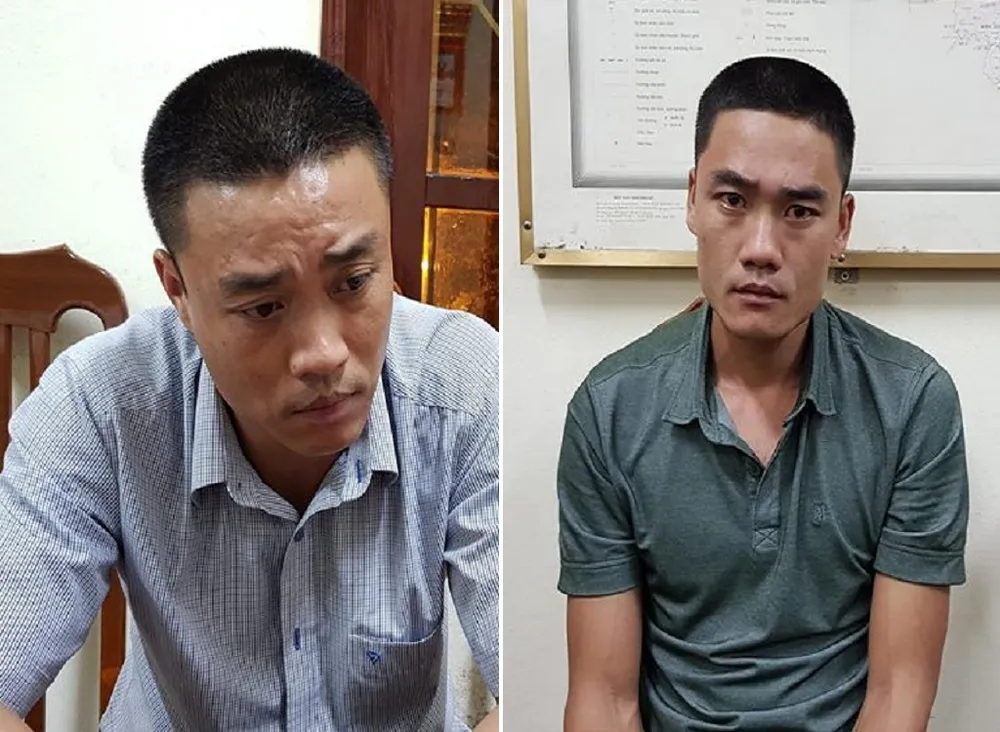 Phạm Xuân Lân và Phạm Xuân Dũng tại cơ quan công an.