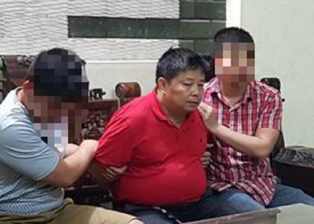 Triệu Ký Vòong (áo đỏ) bị công an bắt giữ.