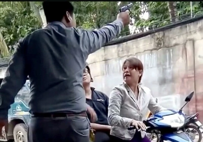 Ông Phương rút súng dọa bắn. (Ảnh cắt từ clip)