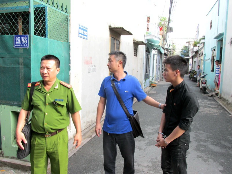 Đối tượng Trần Ngọc Tây bị bắt khẩn cấp tại nơi tạm trú trên đường Bùi Quang Là, phường 12, quận Gò Vấp. Ảnh Phước Tĩnh.