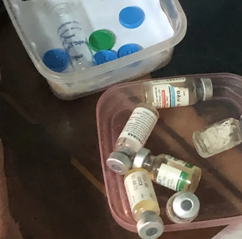 Các lọ vaccine giả do Tiêu Thị Tuyết Sương làm.